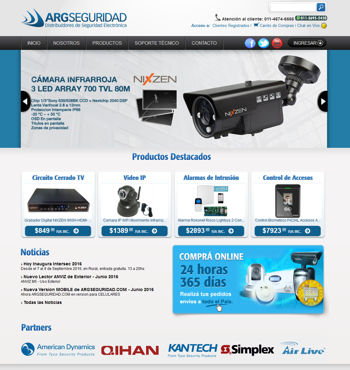 Argseguridad es una de las empresas importadoras más importantes de Seguridad de la Argentina. Durante 16 años participamos en los desarrollos en todas las aréas donde requieran de nuestros servicios, fuimos uno de sus principales proveedores en desarrollo de sistemas, servicios y soluciones Web. Venden sus productos por Internet a todo el País.